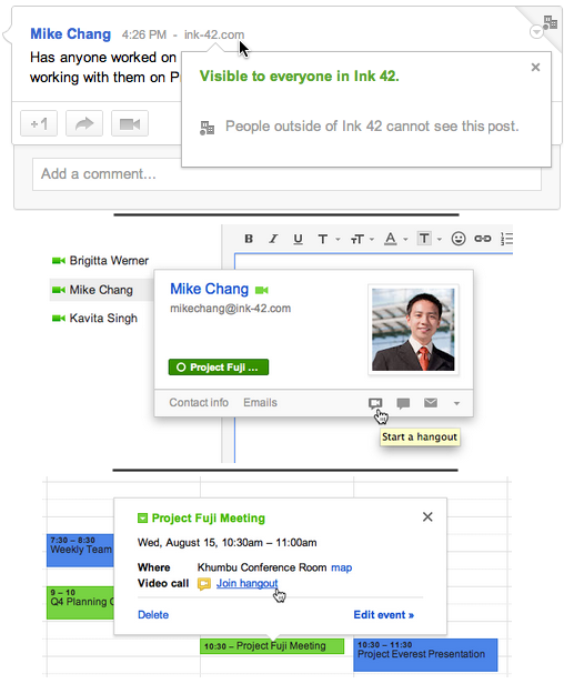 Here’s how you can use Hangouts directly with apps you already use – Gmail, Calendar and Docs: