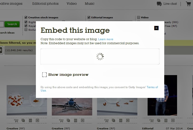 A Getty Images está permitindo embutir (embed) fotos gratuitamente de seu acervo de 35 milhões de imagens.